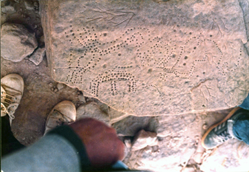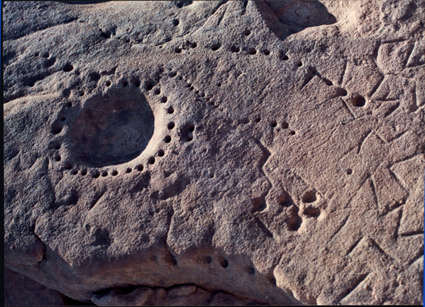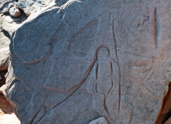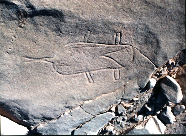 هذه النقوش رسمها الانسان المصري على حافة البحيرة العذبة التي جفت و كان ذلك في عصور قديمة تسبق الأسر الفرعونية في منطقة هضبة ابو طرطور بقرون و هو ما كان يسمى العصر المطير ، الرسوم لنعام و اسماك و وجدت هناك ايضا رحاية لطحن الحبوب من