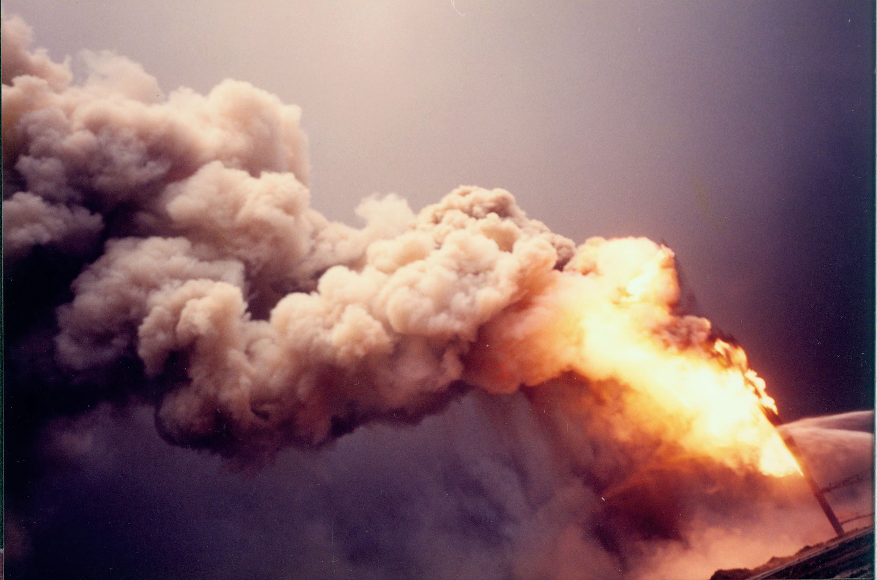 الدخان الكثيف يتصاعد من احد الآبار أثناء محاولات إطفاؤه