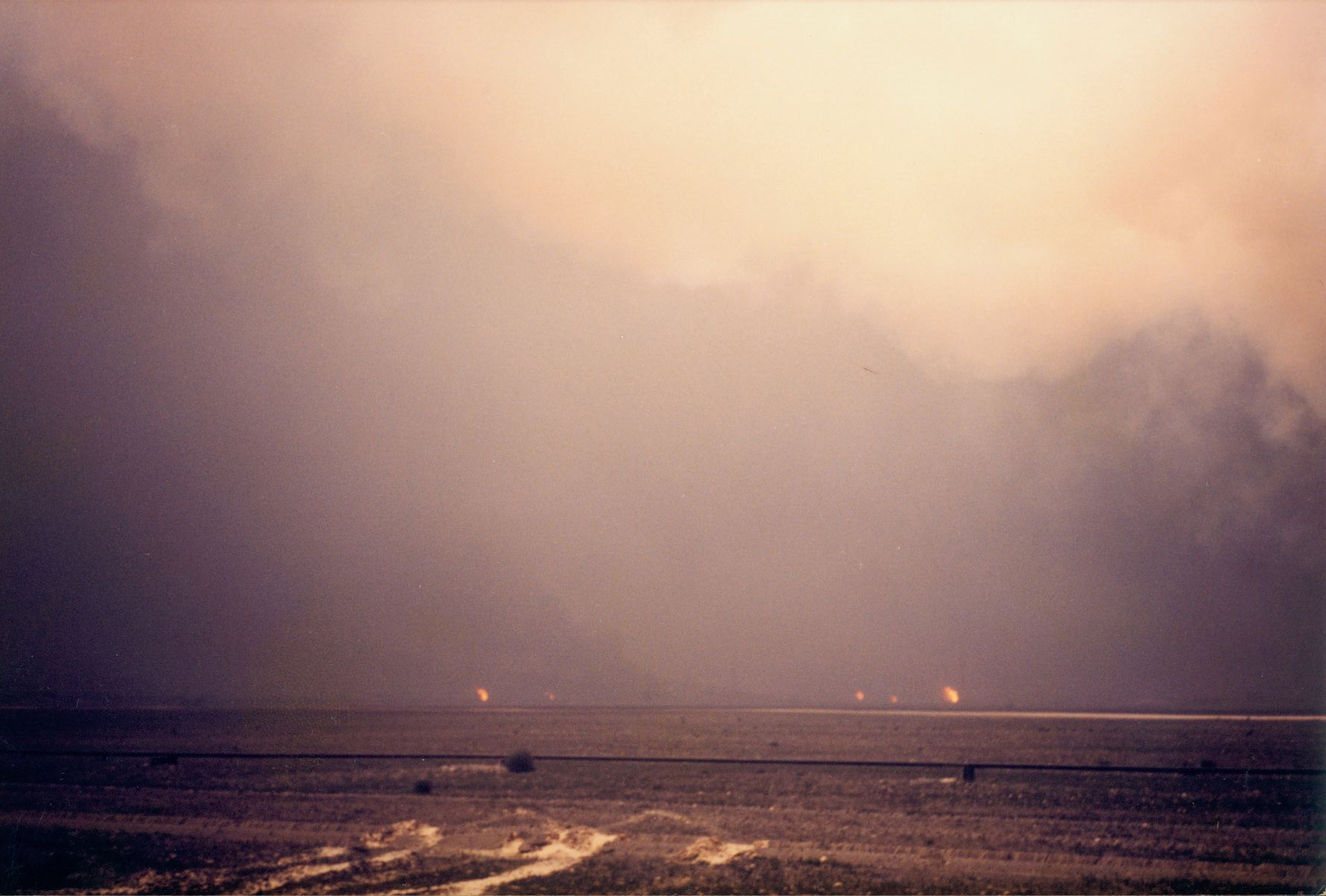 منظر من بعد للعديد من الآبار المشتعلة