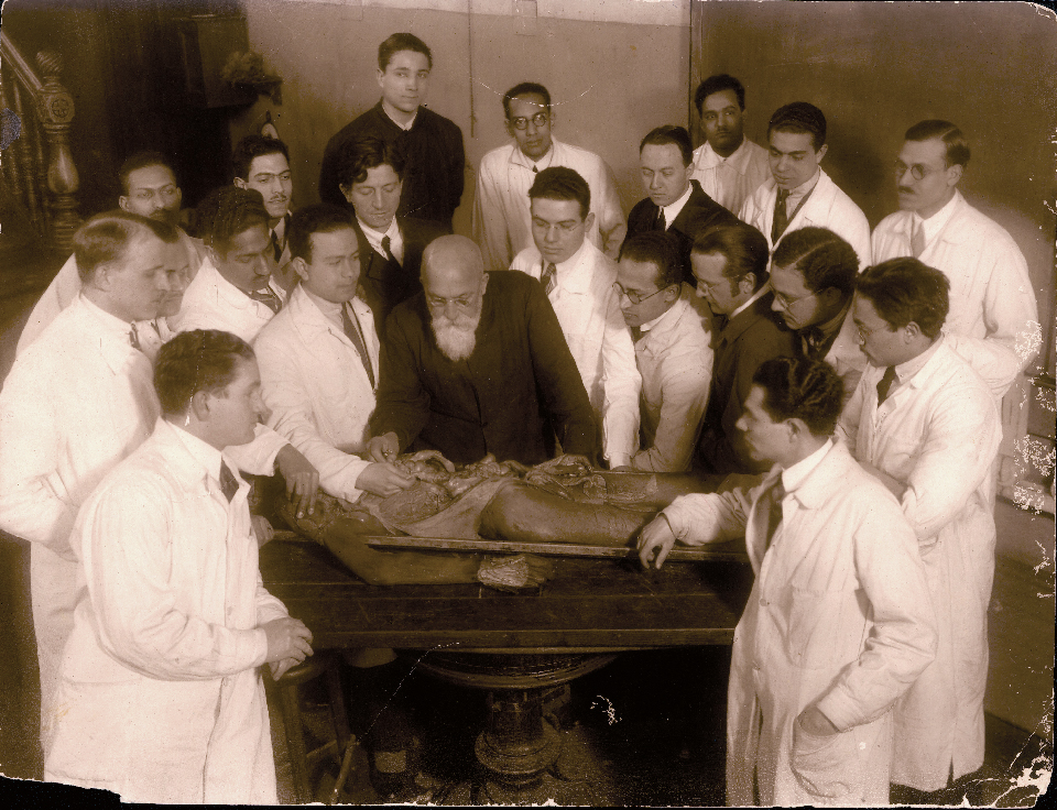 صالة التشريح بجامعة فينا سنة ١٩٢١ برئاسة البروفسور هوخشتتر الذي اشرف على تحنيط جثة لينين