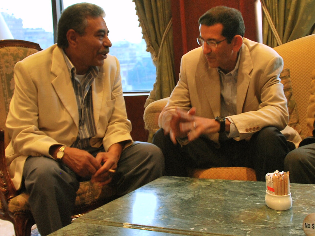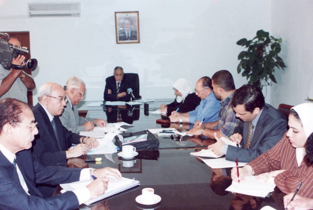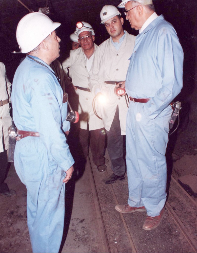إجتماع خلال الزيارات الميدانية لمنجم فحم المغارة عام ٢٠٠١ و يرى بها محافظ سيناء و محافظ السويس