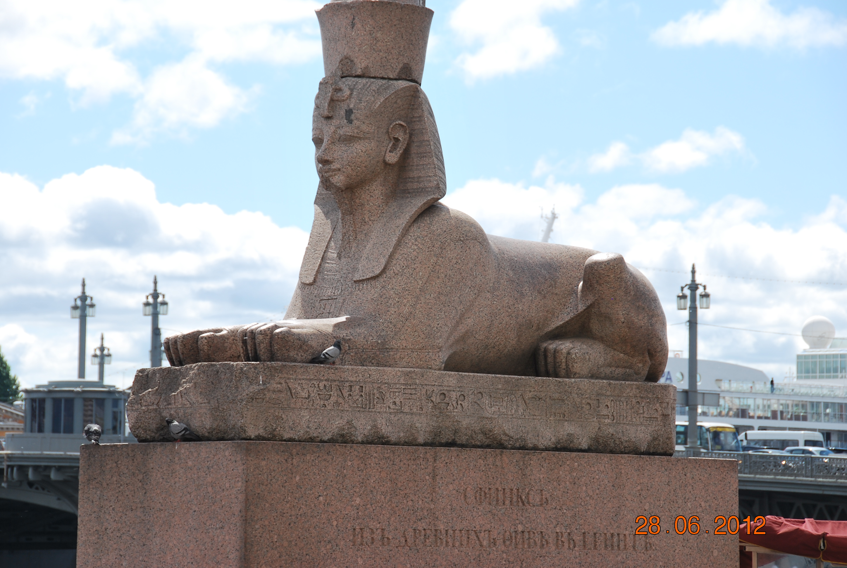 Ancient Egyptian Statue placed on The Bank of Neva River in St. Petersburg since 1830s ..It weighs around 23 tons from pink granite and Witness today to the greatness of the Egyptian who Shape it since 3500 years in the era of Amenhotep III
